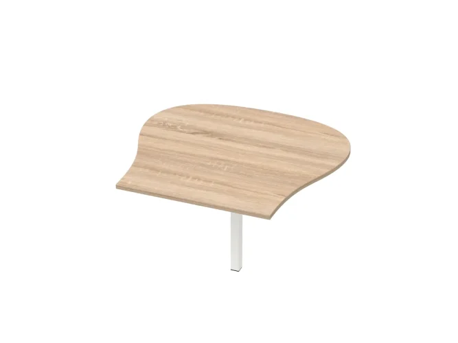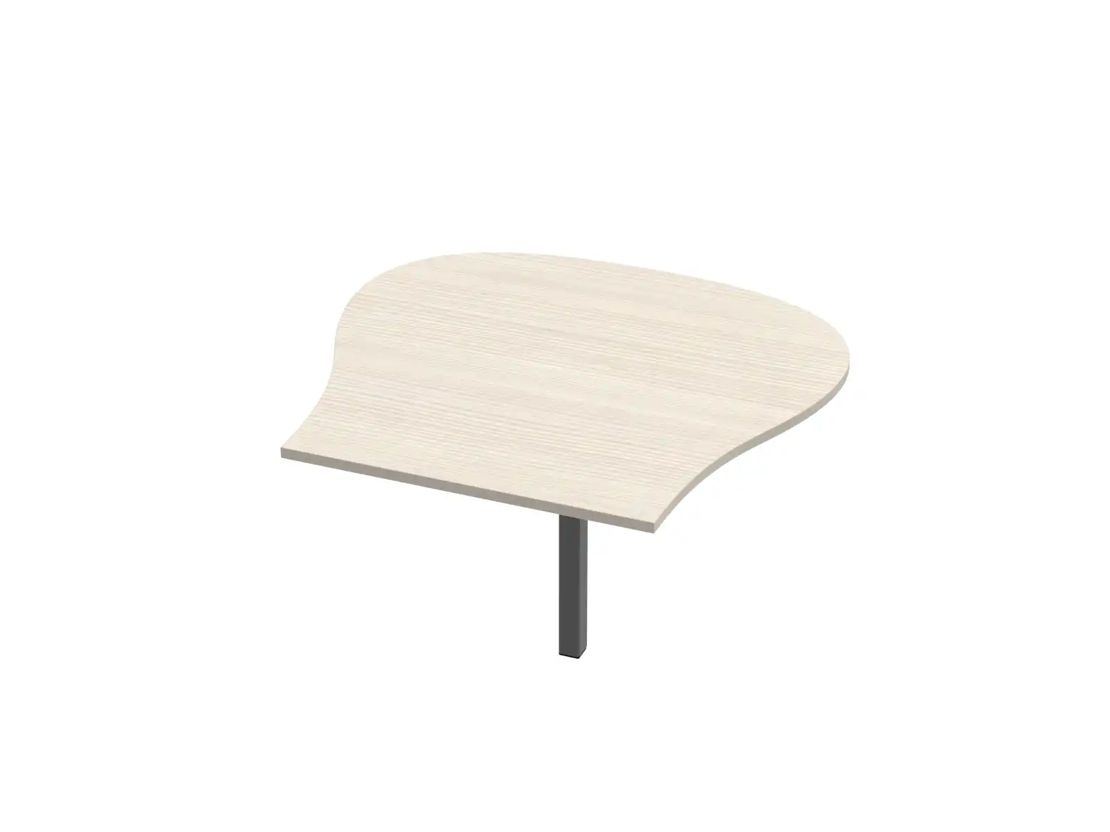 Az asztallap 25 mm vastag laminált faforgács lap 2 mm-es ABS élzárással, íves alakú, 80 cm-es egyenes csatlakozó résszel, elektrosztatikus porszórással felületkezelt 50x50x2 mm-es acél zártszelvény lábbal, szintezhető lábdugóval.