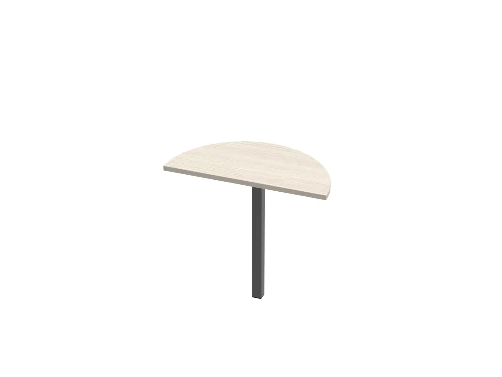 Az asztallap 25 mm vastag laminált faforgács lap 2 mm-es ABS élzárással, félkör alakú, 180 fokos, elektrosztatikus porszórással felületkezelt 50x50x2 mm-es acél zártszelvény lábbal, szintezhető lábdugóval.