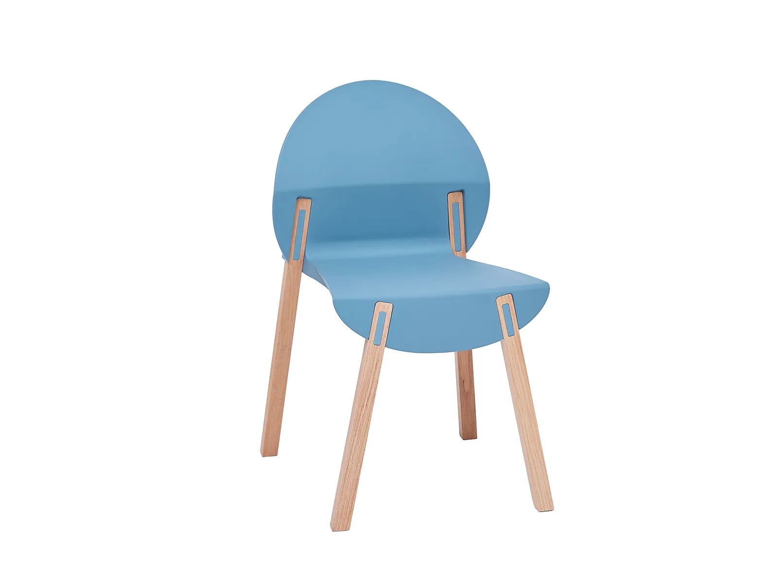 Üvegszállal erősített műanyag palástos szék. A lábak vöröstölgyből készülnek mélyviasz bevonattal, csúszásgátló dugókkal a végükön. Rakásolható kivitel. Színenként 4 db-os egységekben rendelhető.