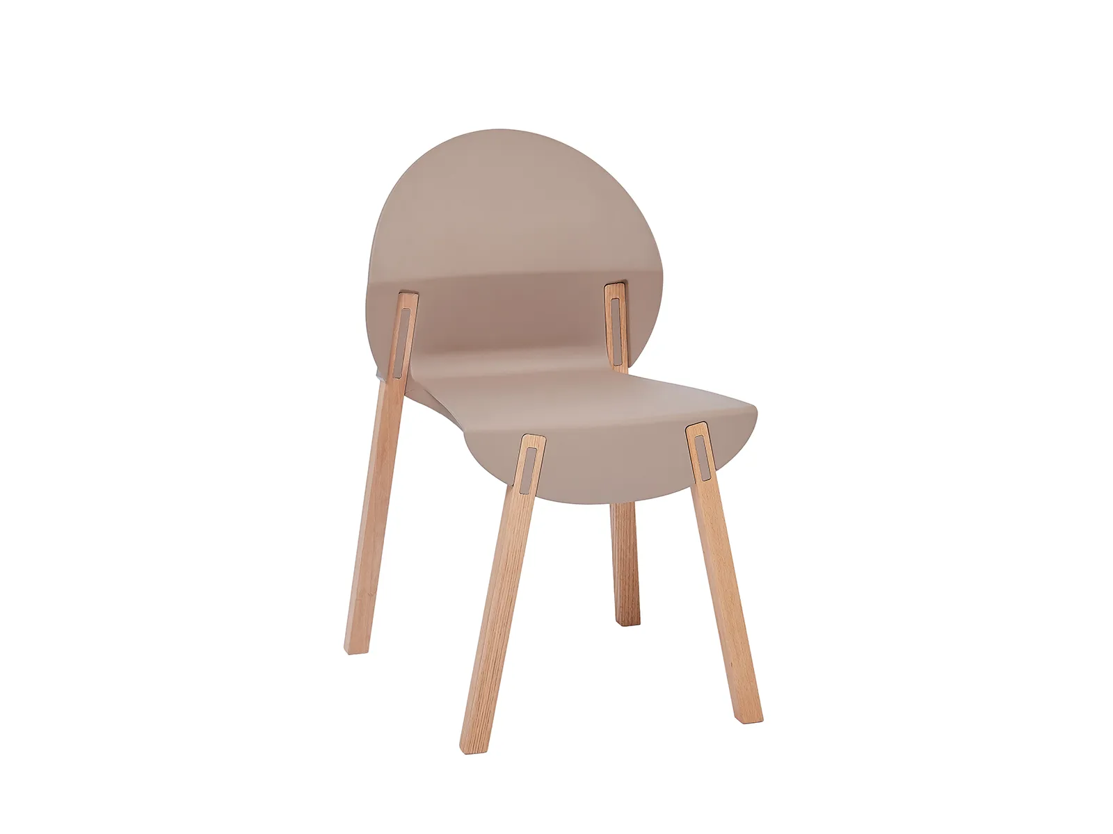 Üvegszállal erősített műanyag palástos szék. A lábak vöröstölgyből készülnek mélyviasz bevonattal, csúszásgátló dugókkal a végükön. Rakásolható kivitel. Színenként 4 db-os egységekben rendelhető.
