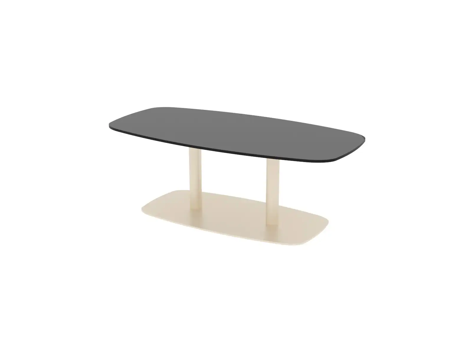 Központi lábas, különleges, modern formájú dohányzóasztal. A talp elektrosztatikus porszórással felületkezelt 8 mm vastag acéllemez, a láb 60 mm átmérőjű acélcső, a talplemezen 4 db szintezővel a padló egyenetlenségeinek kiküszöbölésére. Az asztallap 12 mm vastag kompaktlemez, aminek felülete karcálló, anyaga tömör, nem igényel élzárást.