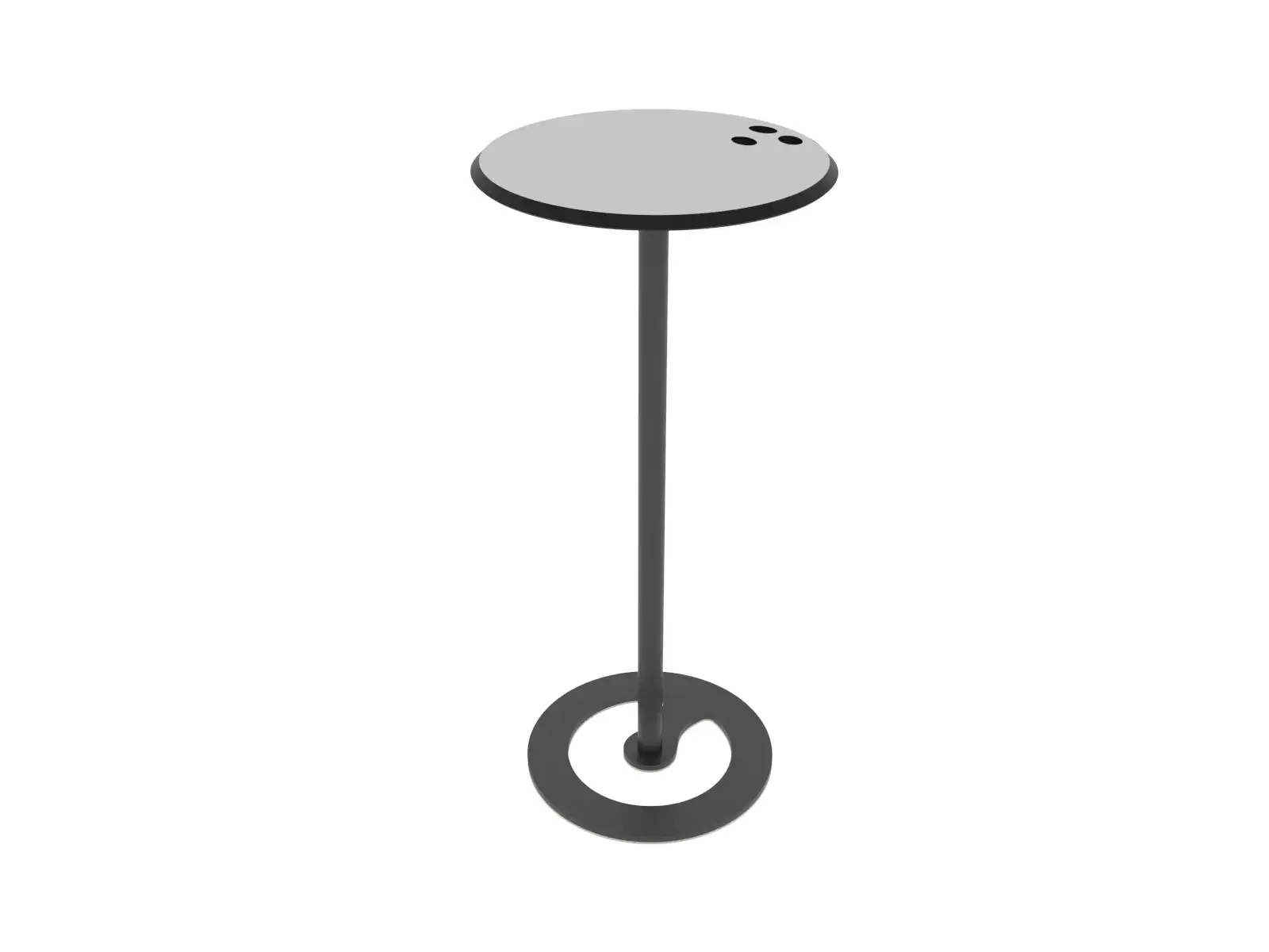 Különleges, egyedi tervezésű lerakó asztal, ami rendkívüli megjelenésével biztosítja a modern környezetet. Használhatjuk kanapék, lounge bútorok mellett, de akár egy babzsákhoz, vagy bármilyen pihenő elemhez jól illeszkedik. A talp elektrosztatikus porszórással felületkezelt 8 mm vastag acéllemez, a láb 30 mm átmérőjű acélcsőből készül, a palóvédelmet a lézervábott padlófilc biztosítja. Az asztallap 12 mm vastag kompaktlemez, aminek felülete karcálló, anyaga tömör, nem igényel élzárást. Terhelhetőség: 5 kg