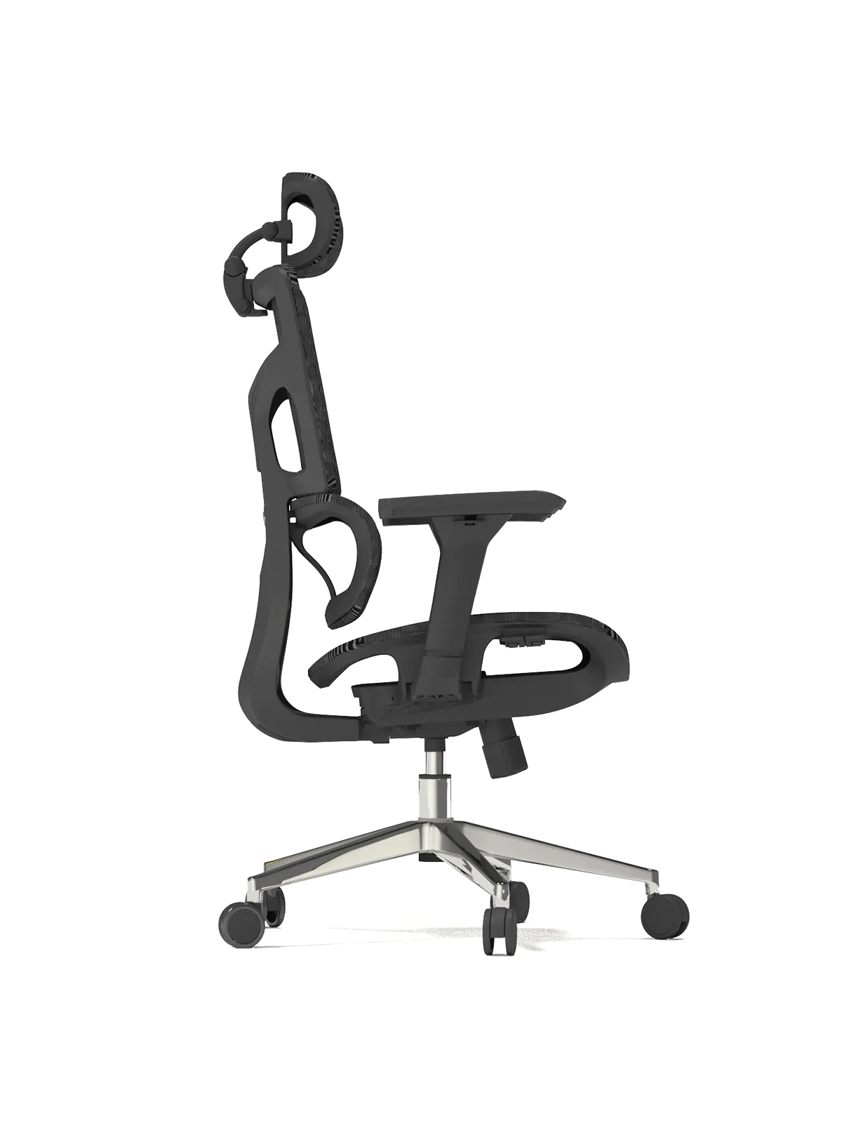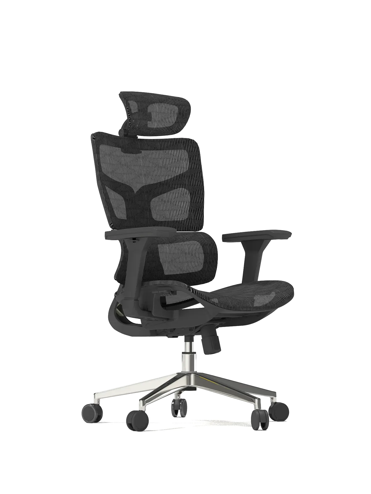Magas háttámlás hálós irodai szék, mind a háttámla, mind az ülőke hálós szövettel készül, ami felveszi a felhasználó alakját, így maximális kényelmet biztosít. 4D fejtámlával szerelt, ez biztosítja a legpontosabb támasztást a nyaknak. Önbeálló deréktámyasszal ellátott, ez a rugalmas elem automatikusan követi a hát és derék mozgását, valamint a nyomást, így nem kell kézzel állítani. 3D karfa három irányban állítható, előre-hátra, oldalra és fordítható. Állítható ülésmélységgel. A háttámla 3 különböző dőlésszögben fixálható anti-shock mechanikával kiegészítve. A dőlés ellenállása a felhasználóhoz állítható. Állítható ülésmagassággal, alumínium lábcsillaggal PU görgőkkel. Napi 8-10 órás használatra alkalmas.