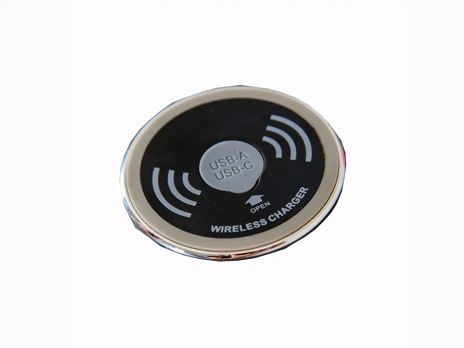 Beépíthető , vezetékes és vezetés nélküli töltő , Qi vezeték nélüli gyors töltő, USB-A és USB-C csatlakozó , 15 w teljesítmény , adapter nélkül.