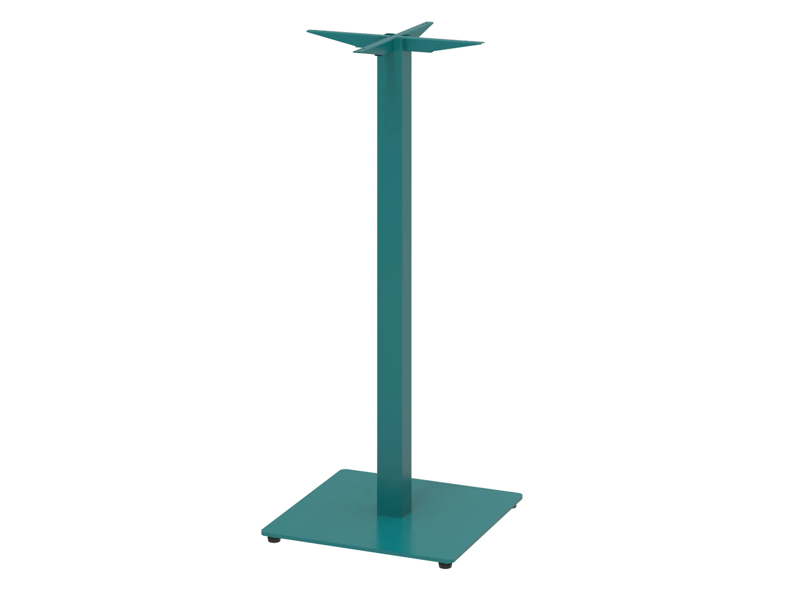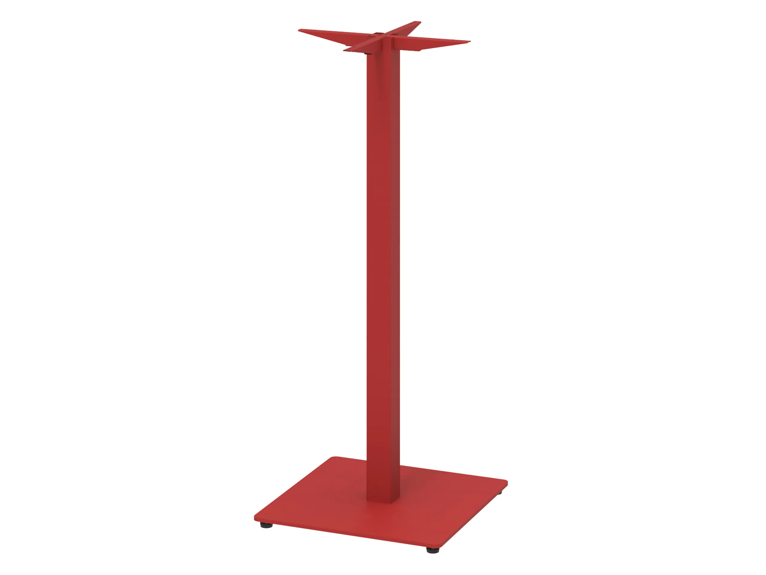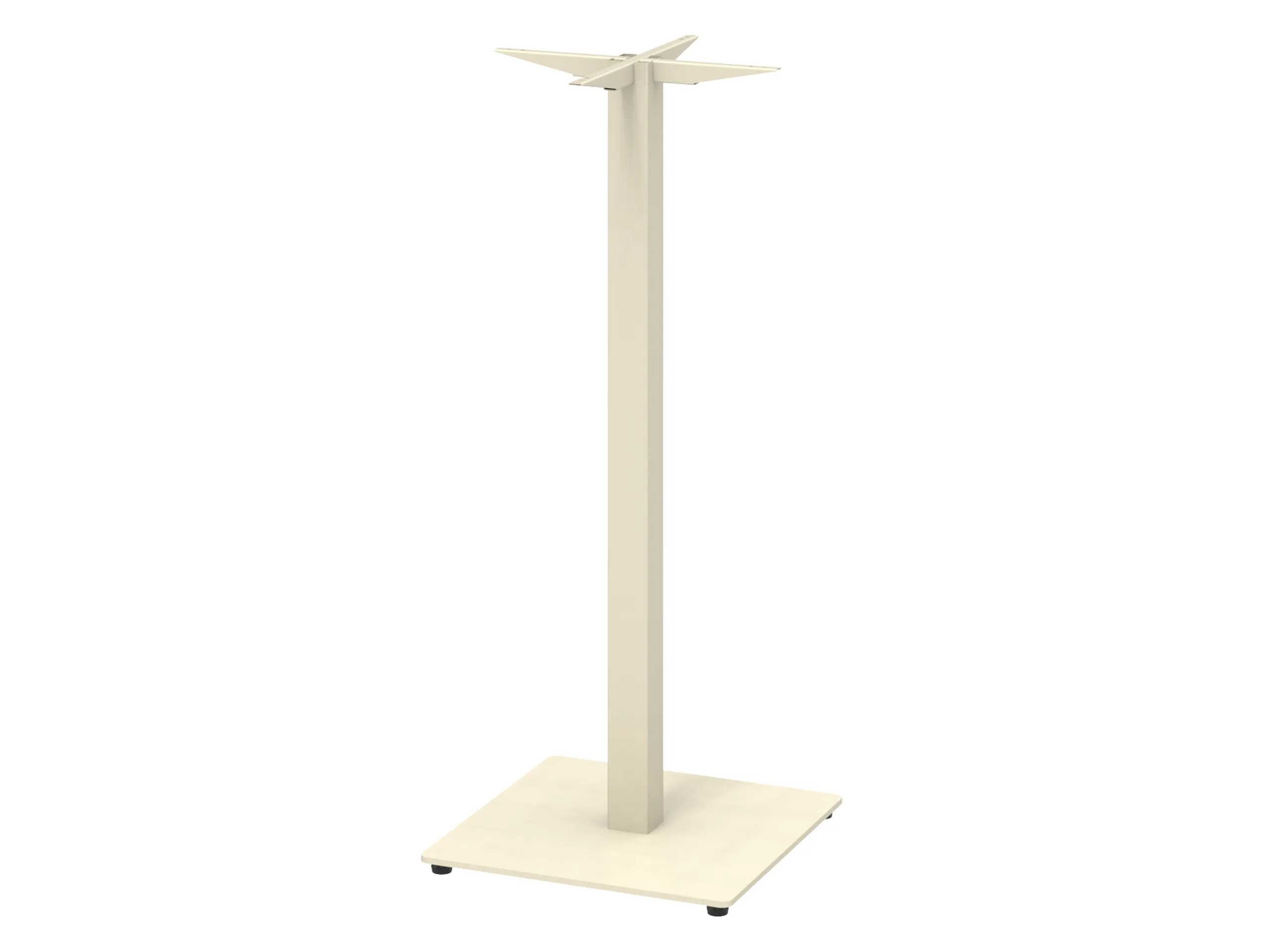 Központi lábas, 60x60 mm-es acéloszlopos bárasztalbázis, 45x45 cm-es acéllemez talppal. Az acéllemez talp alján szintező talpak találhatók, amelyek lehetővé teszik a padló egyenetlenségeinek kiküszöbölését. A bárasztalbázis maximum 80 cm átmérőjű vagy 80x80 cm-es asztallapokhoz ajánlott. A fém váz magassága 110 cm.