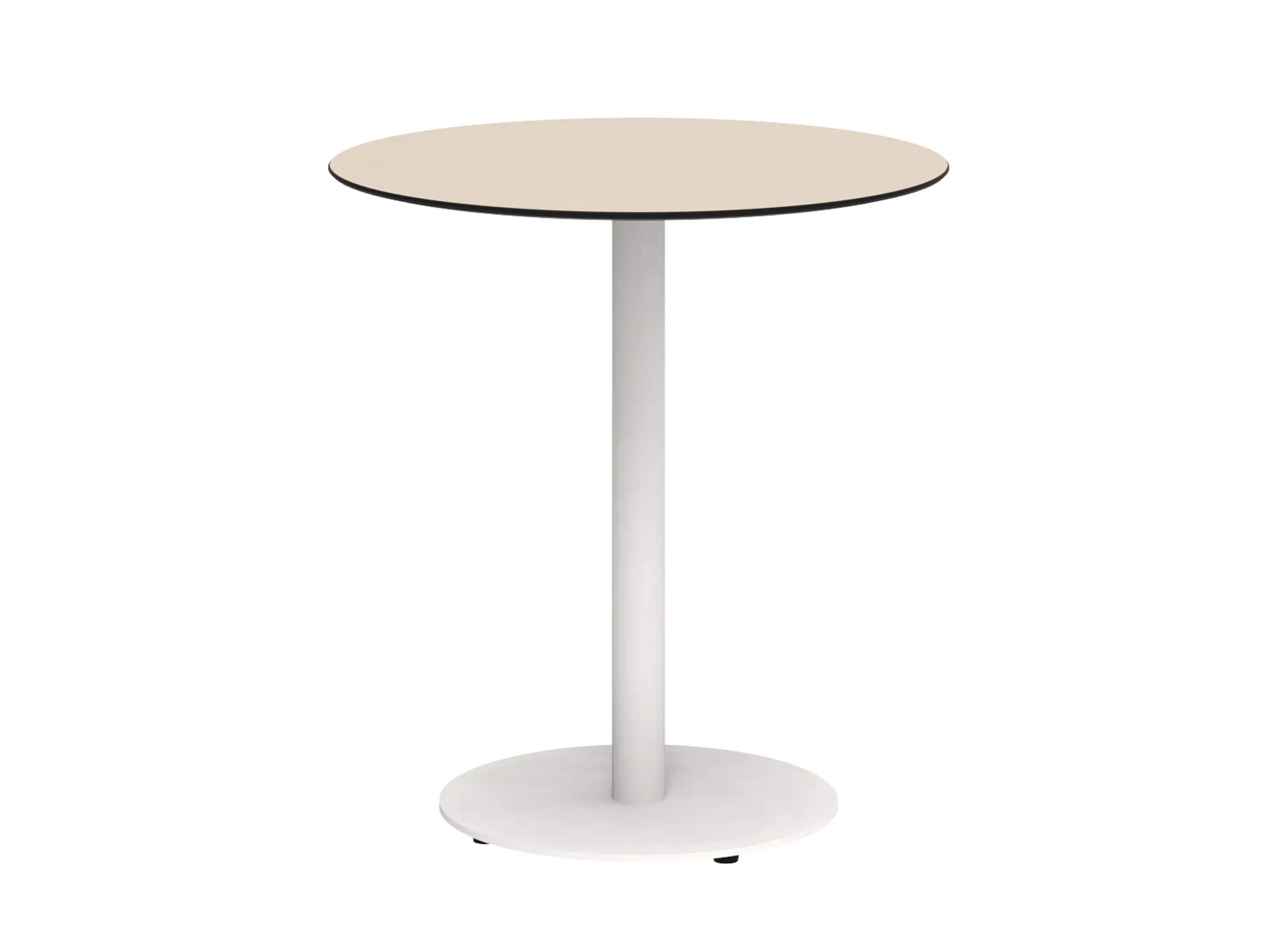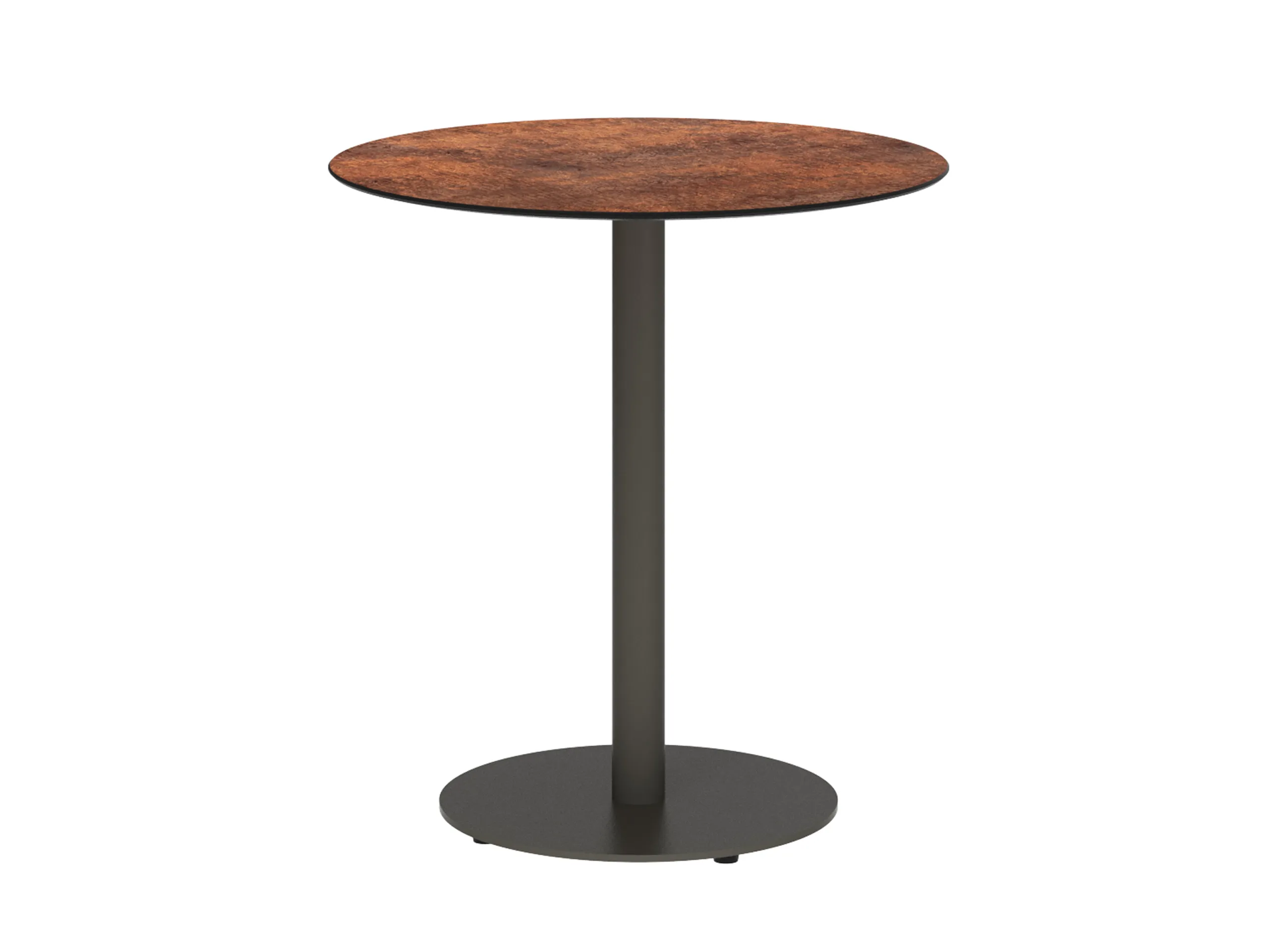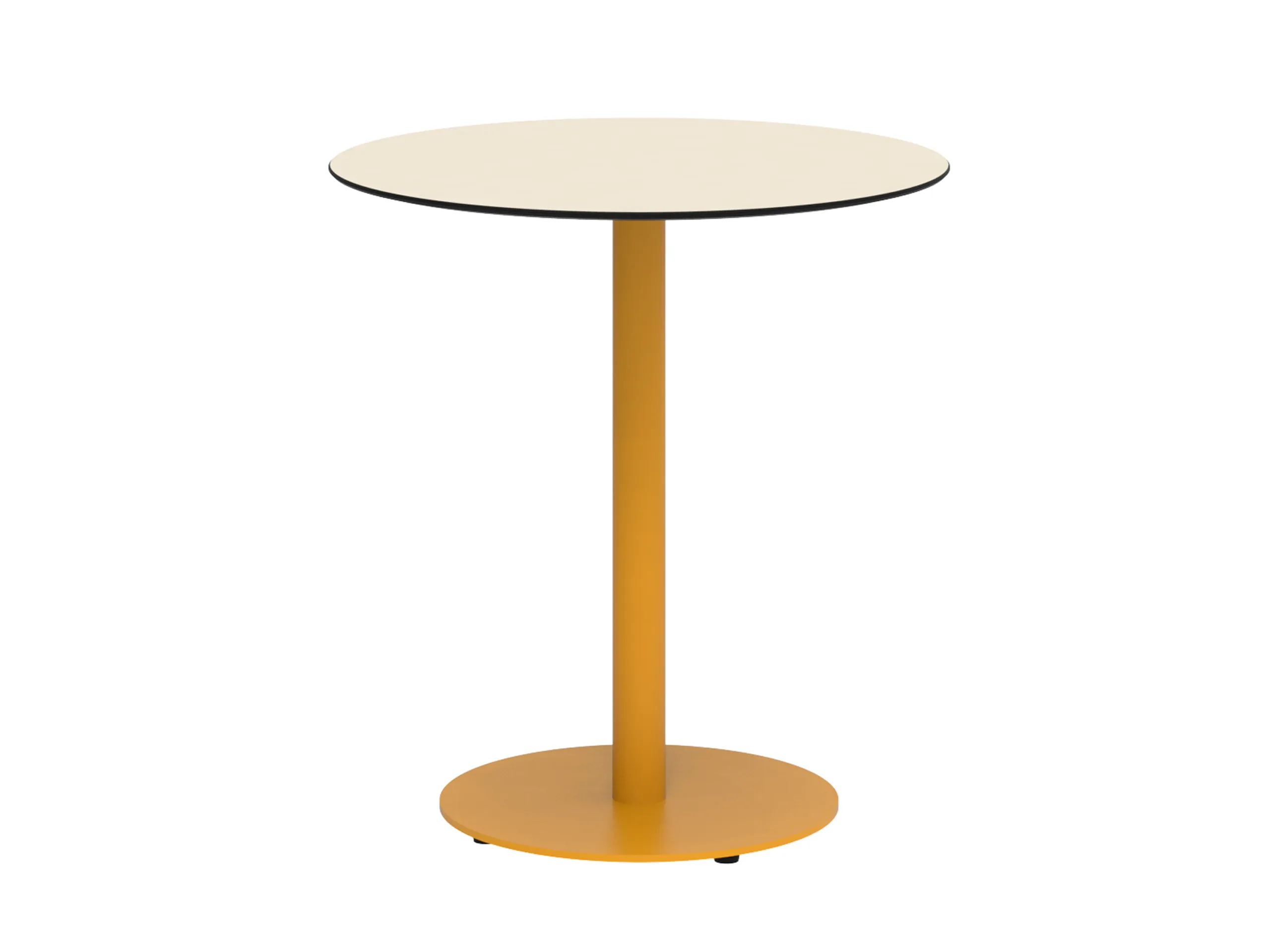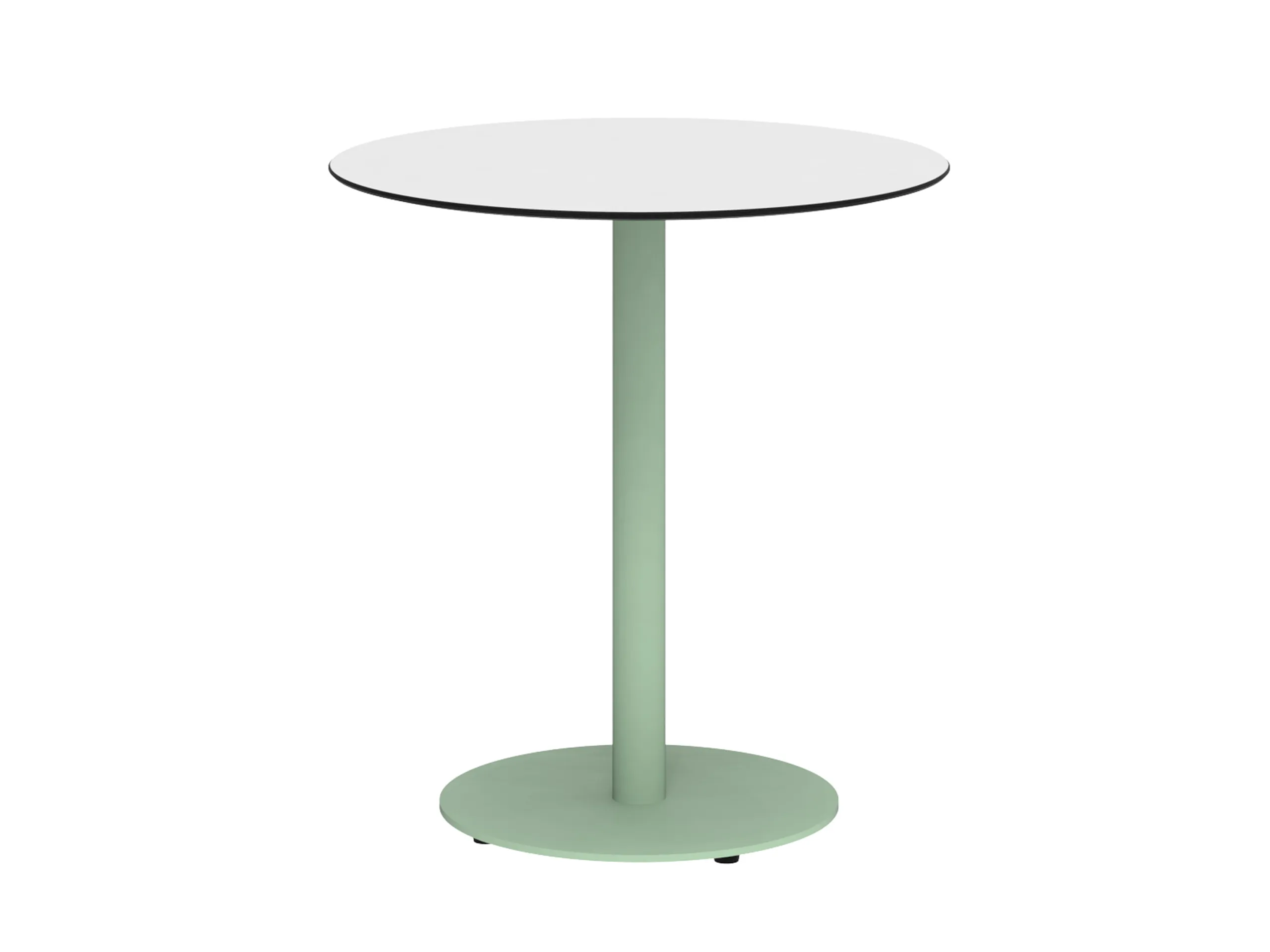 Központi lábas, asztal. A talp elektrosztatikus porszórással felületkezelt 8 mm vastag, 45 cm átmérőjű acéllemez, az oszlop 60 mm átmérőjű acélcső, a talplemezen 4 db szintezővel a padló egyenetlenségeinek kiküszöbölésére. Az Az asztallap 12 mm vastag fekete magos kompaktlemez, aminek felülete karcálló, hőálló, anyaga tömör, nem igényel élzárást.