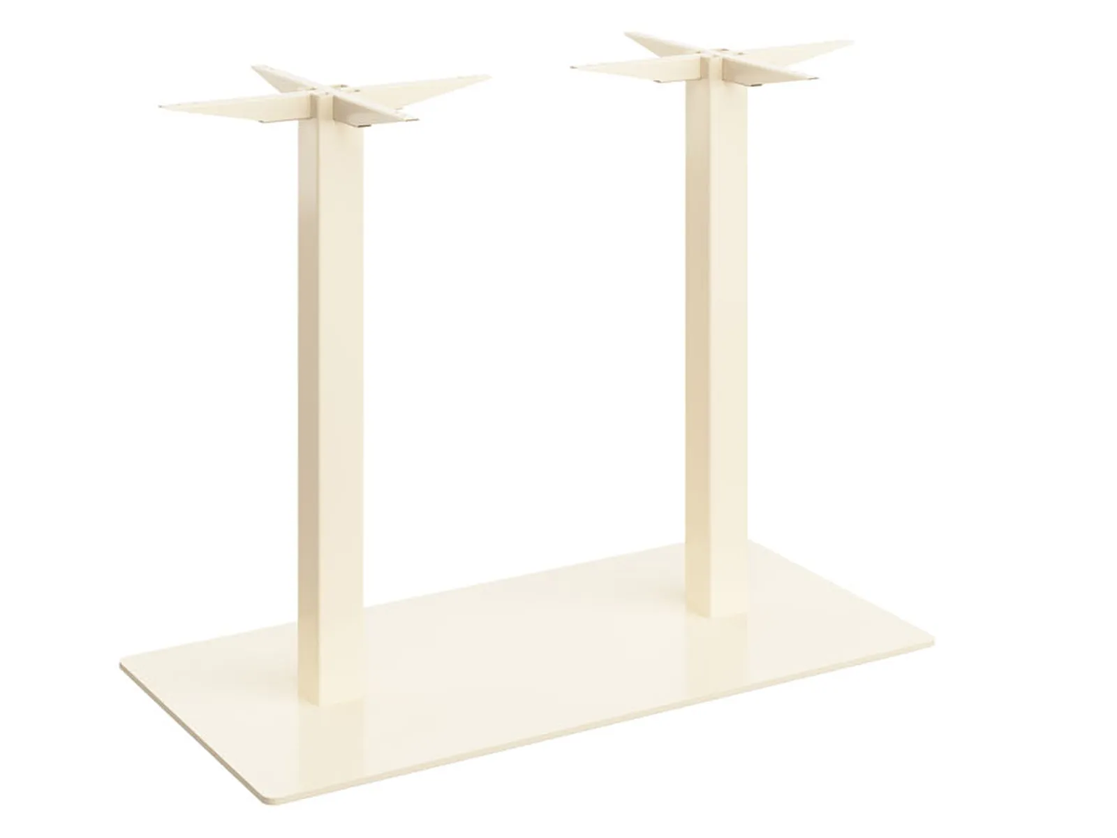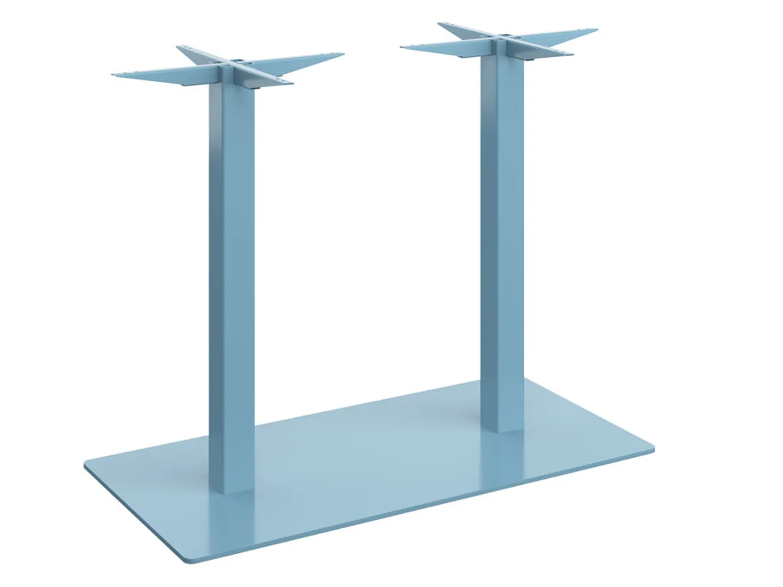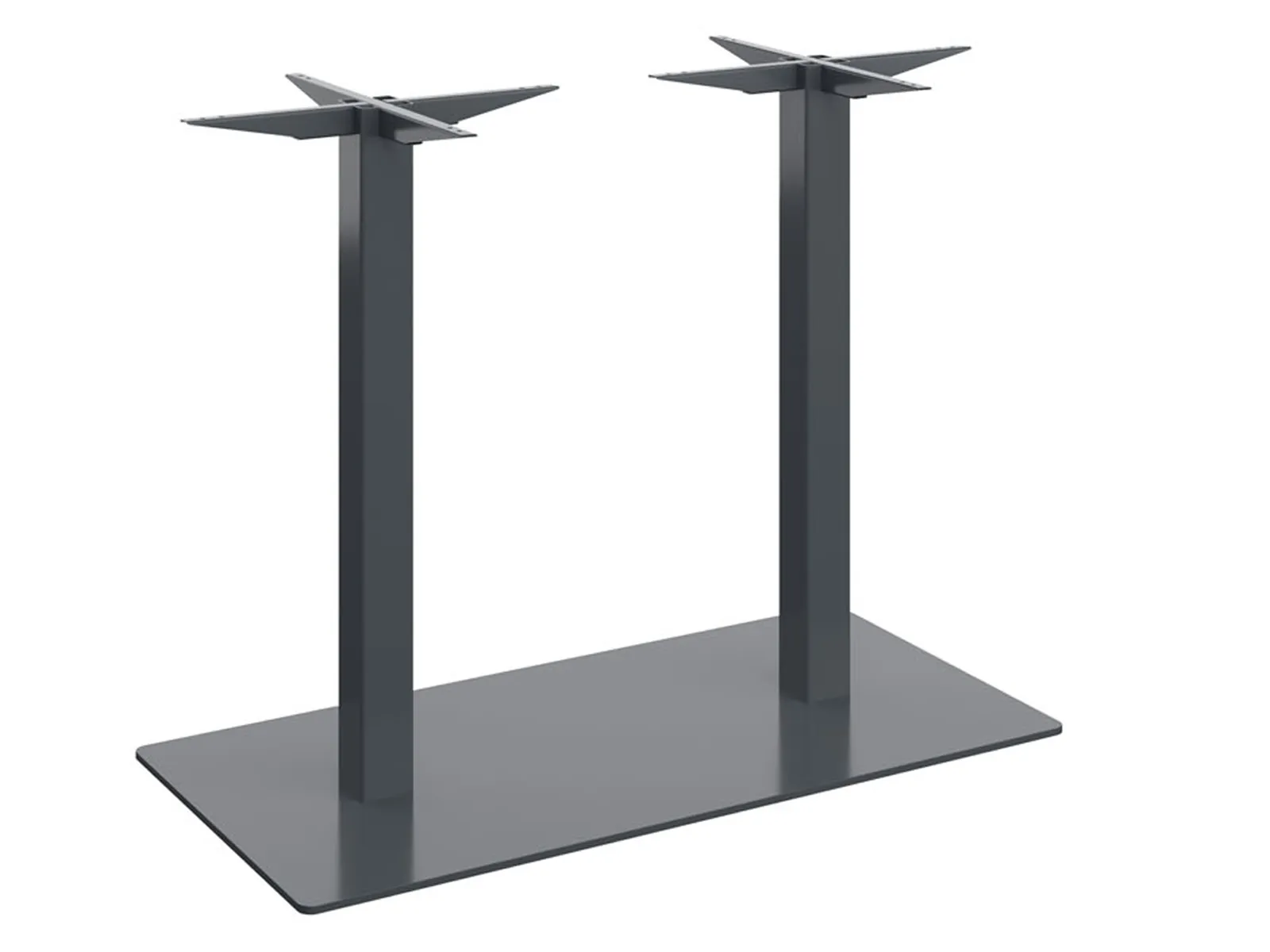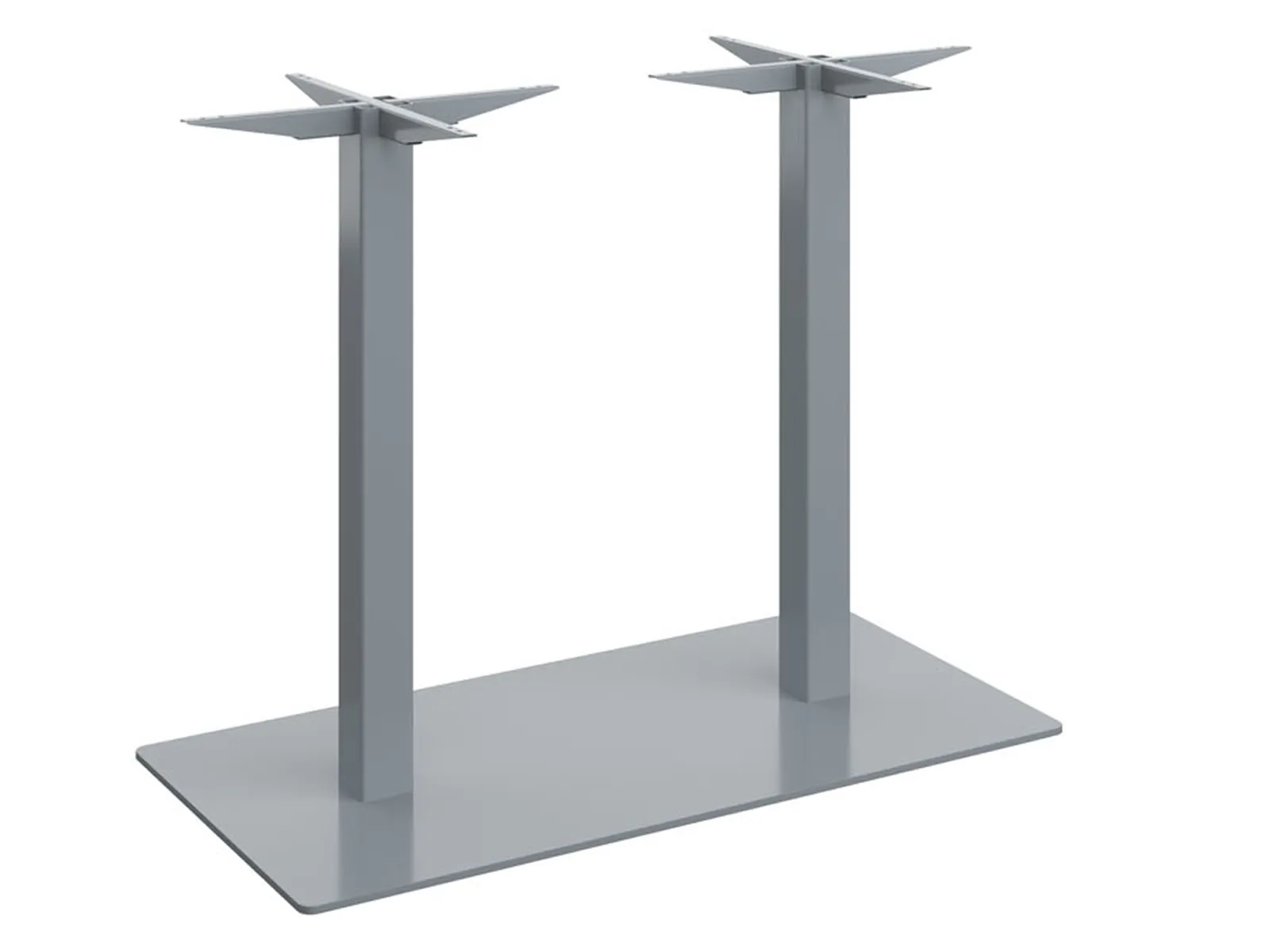 Központi lábas, 60x60 mm-es dupla acéloszlopos asztalbázis, 75x45 cm-es acéllemez talppal. Az acéllemez talp alján szintező talpak találhatók, amelyek lehetővé teszik a padló egyenetlenségeinek kiküszöbölését. Az asztalbázis maximum 120x80 cm-es asztallapokhoz ajánlott. A fém váz magassága 75 cm.