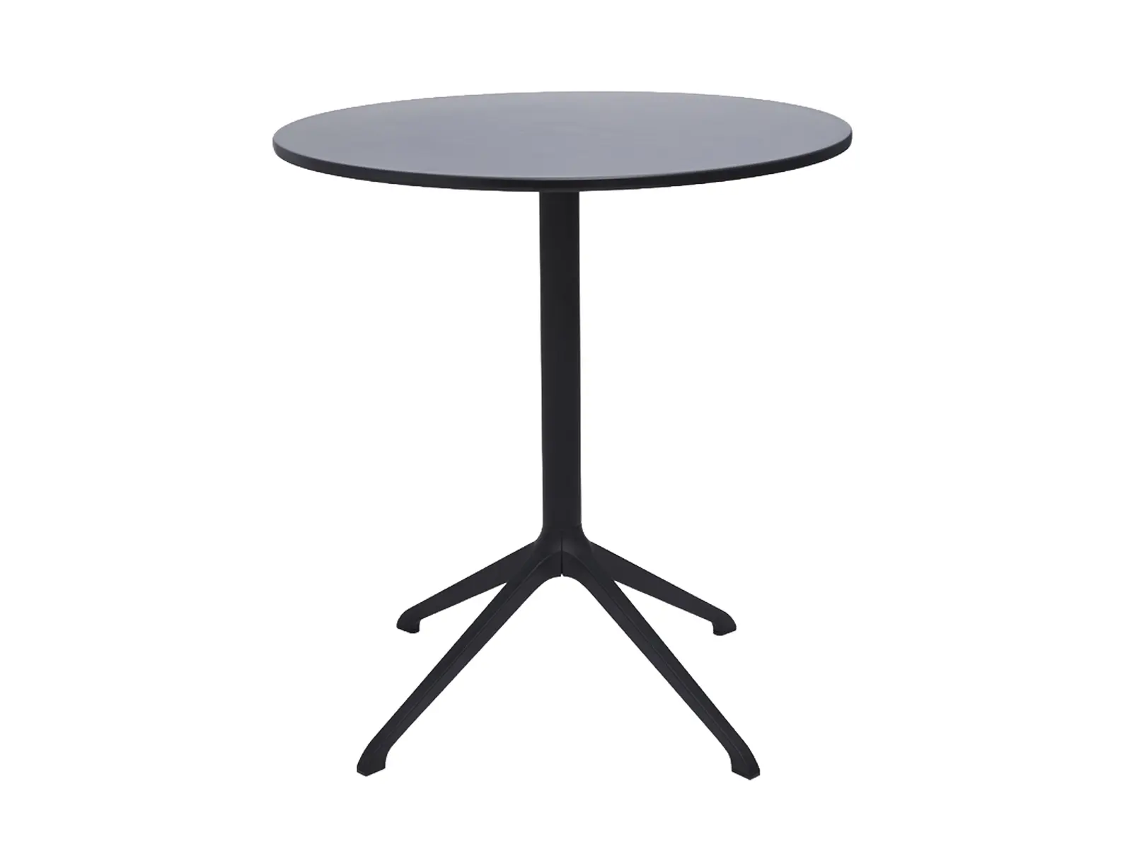 Öntött alumínium lábszerkezetű asztal fekete porszórt felülettel. Az asztallapja műanyagból készül, amely szintén fekete. Kültérre is ajánlott.