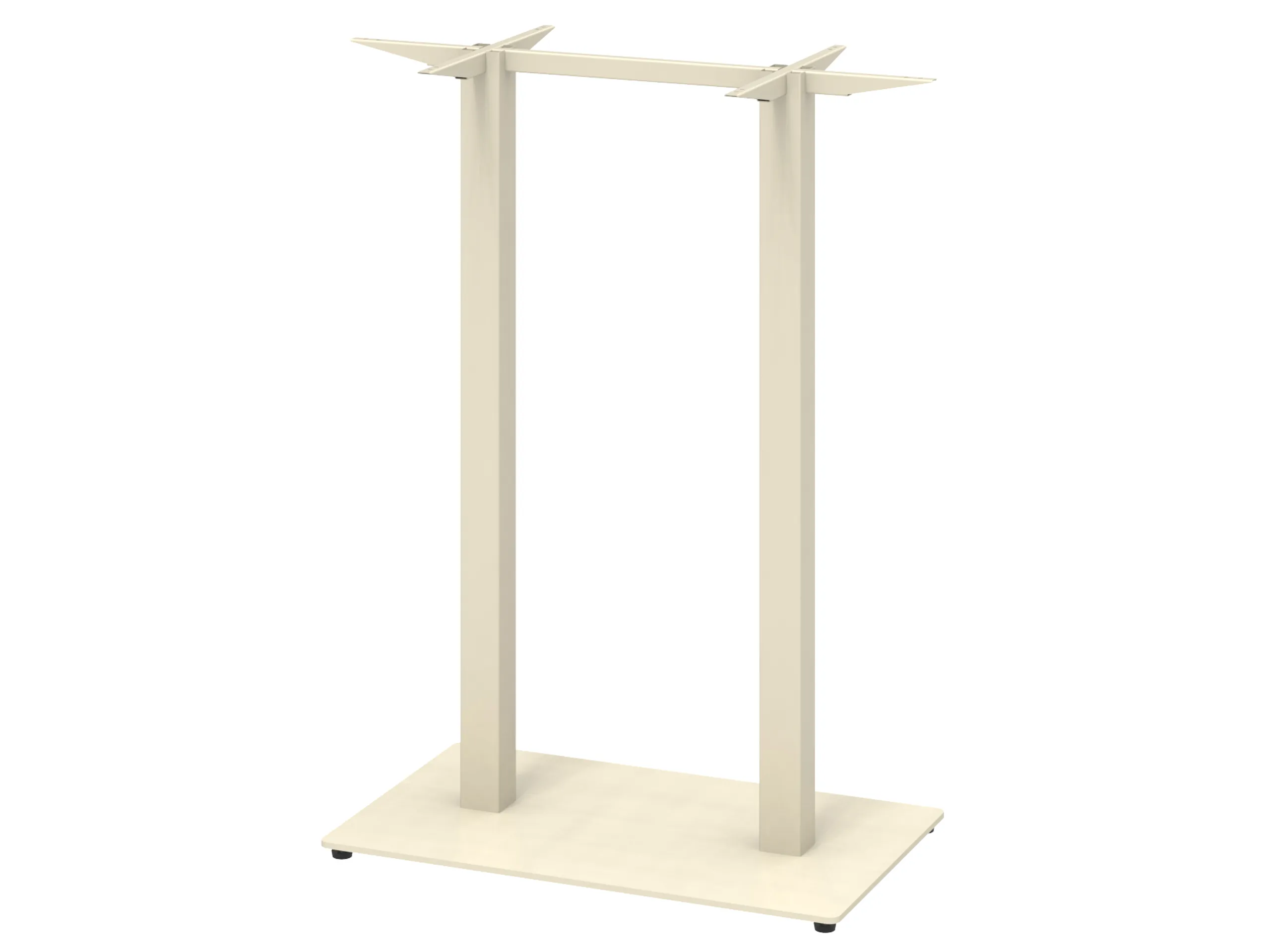Központi lábas, 60x60 mm-es dupla acéloszlopos bárasztalbázis, 75x45 cm-es acéllemez talppal. Az acéllemez talp alján szintező talpak találhatók, amelyek lehetővé teszik a padló egyenetlenségeinek kiküszöbölését. A bárasztalbázis maximum 120x80 cm-es asztallapokhoz ajánlott. A fém váz magassága 110 cm.